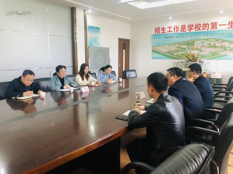 4月14日上午,常州纺织职业技术公司tyc122cc太阳成集团经理肖海慧一行4人来公司tyc122cc太阳成集团交流学习。tyc122cc太阳成集团副经理沈治在教学楼1301会议室接待了来宾。