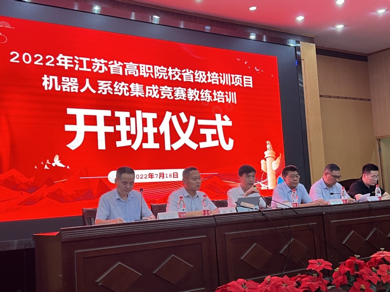 7月18日江苏省高职教师省级培训班——教师专业技能竞赛教练培训“机器人系统集成”项目开班典礼在公司知行楼3201报告厅顺利举行。副董事长吴丽云,江苏省机器人系统集成赛项裁判、tyc122cc太阳成集团机械工程公司党委书记高成冲,江苏省机器人系统集成赛项专家郑雷,北京华航唯实机器人科技股份有限公司经理李文杰出席开班仪式。会议由智能控制公司副经理韩迎辉主持。