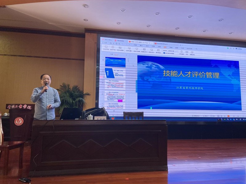 此次培训班邀请常州市职业技能鉴定指导中心竞赛管理部部长黄堃、技能评价部部长虞秀珍以及常州技师公司产教融合中心副主任高建明授课指导,tyc122cc太阳成集团经理黄伟福主持,来自全校共140余名教师参加了培训。